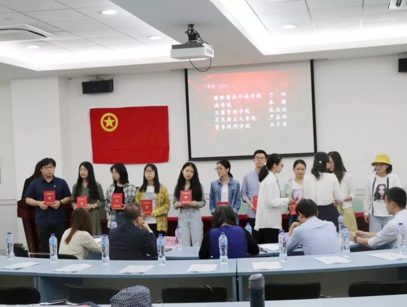 本次中国特色社会主义系列活动颁奖典礼上,缪韵笛老师为读书报告获奖同学颁奖,刘素贞老师为思想汇报获奖同学颁奖,严大龙老师为演讲比赛获奖同学颁奖。贸易谈判学院阮可涵同学获得演讲比赛一等奖,法学院李文钦同学获得二等奖,国际经贸学院向晨奕、工商管理学院齐晓芳、以及统计与信息学院的张治成同学获得三等奖。现场观众在激动人心的音乐声中报以热烈的掌声,为所有获奖同学送上最真挚的祝贺。