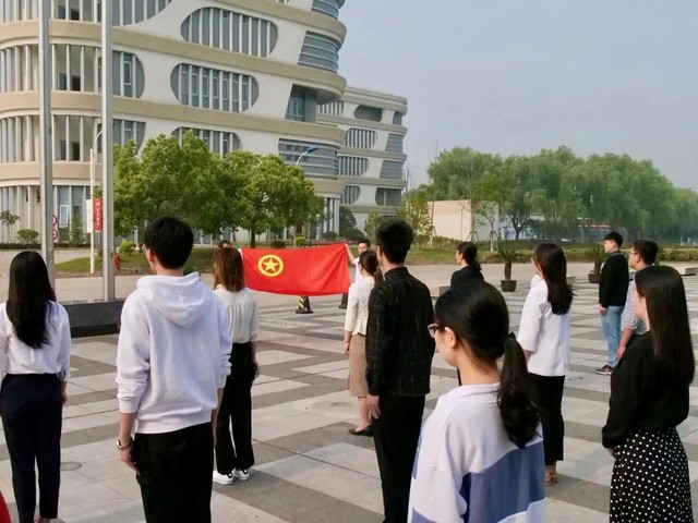 校党委学工部副部长、团委书记缪韵笛老师,校党委学工部副部长刘素贞老师,以及来自学校和学院的团委老师、各学院辅导员代表、学生代表在现场参加了此次升旗仪式。