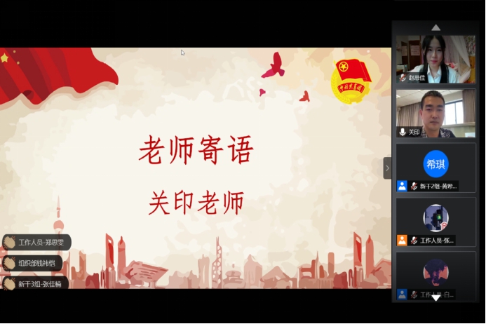 由于疫情的影响,6月5日下午,第五十一期团校暨创新人才学校新生干部上岗培训班结业仪式以线上的方式举行。校党委学生工作部副部长赵静,团委副书记关印、司徒力云,团委汲明悦出席仪式,一百余名新干班学员参与仪式。