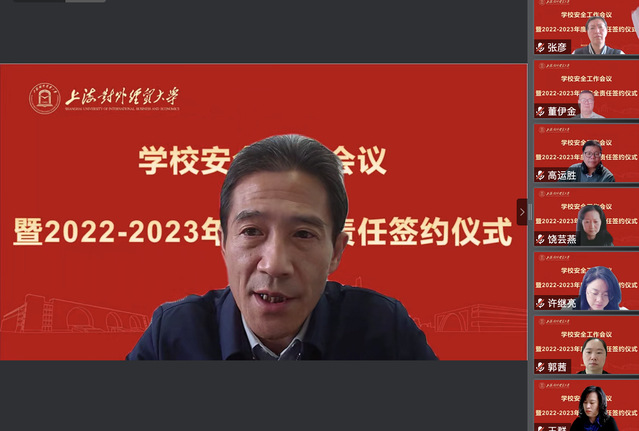 李少丹向与会人员介绍了2022—2023年度安全工作责任签约有关事项安排,并通报了学校新一轮签约期的安全工作要点,主要包括“确保校园稳定、摸清底数现状和推进齐抓共管”的安全工作目标和“五个强化”“五个要严”“双下降与双确保”的安全工作要求,并提出完善责任体系机制、凝聚齐抓共管、创新安全工作模式、完善风险评估、推进技防建设、优化校园安全育人机制、完善应急预案和注重队伍建设等八个方面的具体举措。