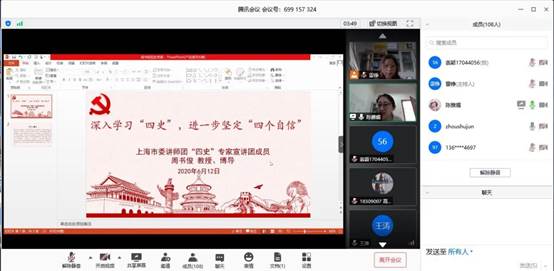 邀请上海市委讲师团“四史”专家宣讲团成员、上海市教卫系统宣讲团讲师周书俊开展《深入学习“四史”,进一步坚定“四个自信”》党课,推动全院师生党员知史爱党、知史爱国,增强守初心、担使命的思想自觉和行动自觉。