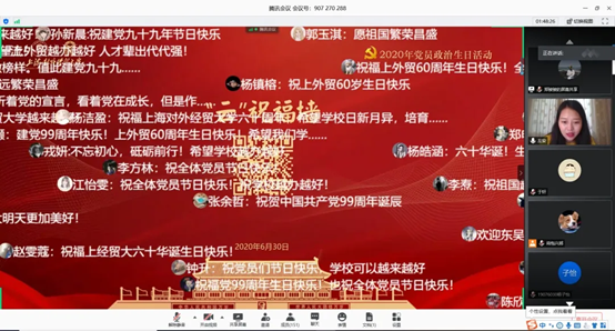 学院组织各师生党支部及在鄂师生临时党支部在“七一”前夕,聚焦建党99周年和学校建校60周年,以奋进六十坚守初心,学史鉴今勇担使命为题举行主题党日活动。活动通过四史,守初心学典型,找差距话校史,明担当赠祝福,谱新篇四个篇章,学习传承上经贸大人与祖国同频共振、前赴后继为国奉献的奋斗精神和优良传统,提高学习教育的精准供给能力,提升学习效果。