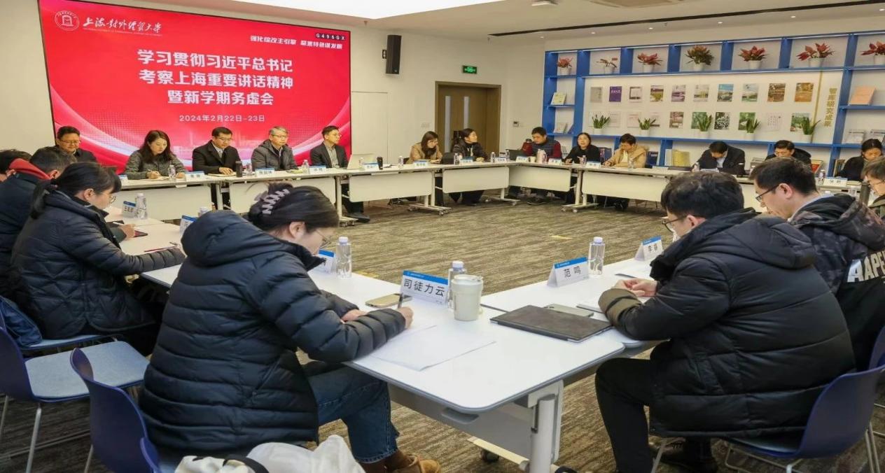 2月2223日,学校在古北校区综合楼506会议室召开学习贯彻习近平总书记考察上海重要讲话精神培训暨新学期务虚会。本次会议的主题是“强化综改主引擎 聚焦特色谋发展”,旨在深入学习贯彻落实党的二十大精神、习近平总书记关于教育的重要论述、习近平总书记考察上海重要讲话精神,紧紧围绕全面深化教育综合改革,聚焦学科专业优化调整、资源服务保障能级提升等重要内容,集思广益、献计献策,向改革要动力、向创新要活力,切实推动学校事业发展再上新台阶。全体校领导,全体党委委员、纪委委员、中层领导人员,部分党代会代表、教代会代表,民主党派、无党派人士、统战团体代表,党支部书记代表、科研骨干代表、青年教师代表等参加会议。校党委书记祁明作动员讲话,校长汪荣明作总结讲话。校党委副书记吴毅,校党委副书记、纪委书记章益国,副校长徐永林分别主持会议相关环节并对主旨报告作点评。