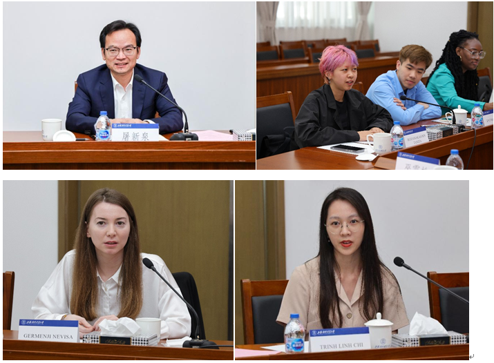 随后,双方围绕强化WTO教席协同效应,建立全球经贸治理研究网络联动合作机制,提升国际化能力和开展国际组织人才培养等主题进行深入座谈讨论。各位国际留学生也纷纷发表自己的心得体会。双方共享在学术研究、国际组织人才培养、国际文化交流等方面的经验,致力于共同服务国家对外开放战略,为国家参与全球治理输送优秀人才。