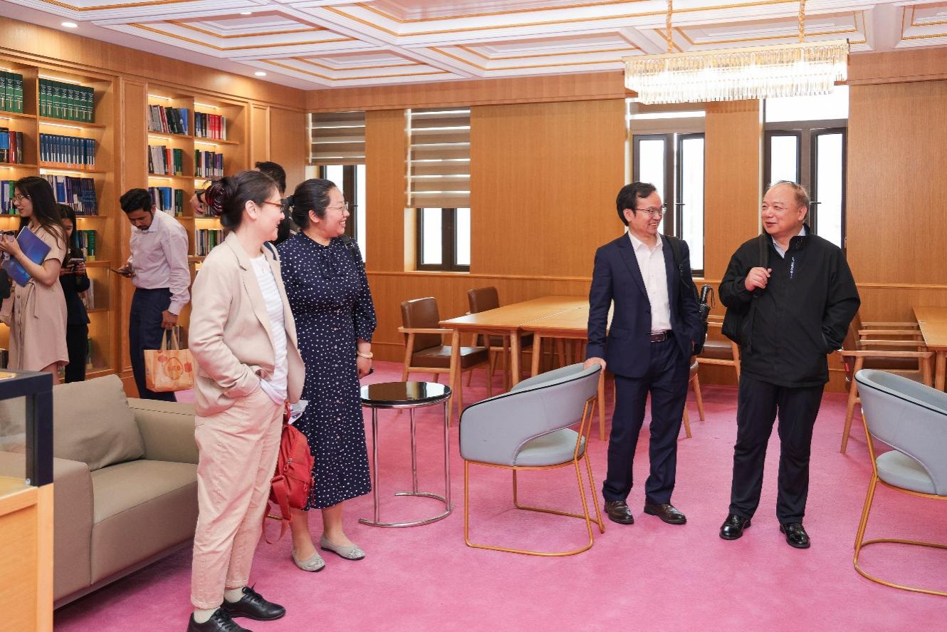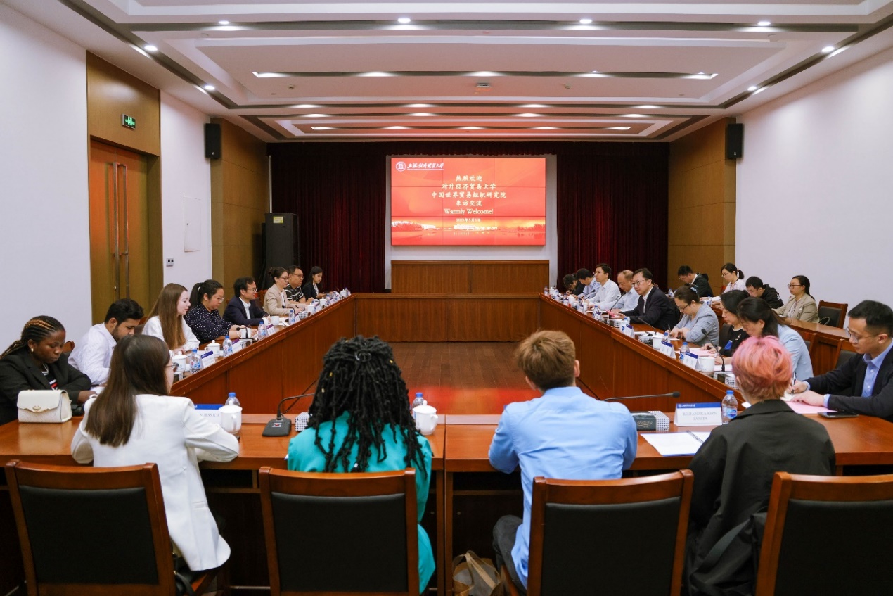 5月5日上午,对外经济贸易大学中国世界贸易组织研究院院长屠新泉、国家对外开放研究院党委副书记高媛、院办主任戴臻、教学教务科主任科员高健及国际留学生一行来我校古北校区调研交流。校长汪荣明、WTO亚太培训中心主任黄建忠、贸易谈判学院党总支书记王文丽、外事处处长金泉、WTO亚太培训中心执行主任应品广、学校办公室副主任巫雪松、贸易谈判学院党总支副书记商志民、副院长徐昕、国际经济组织系主任王茜及相关教师出席调研座谈会。