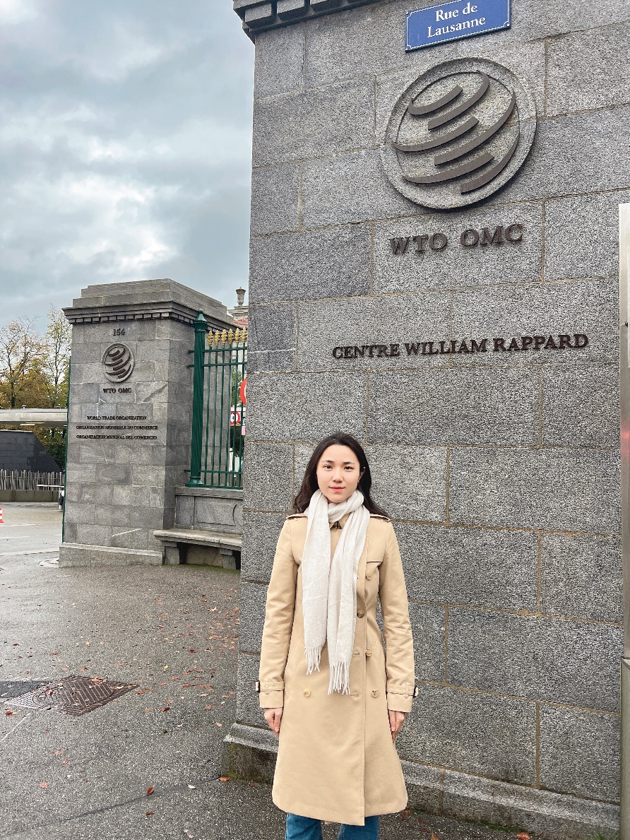 Siyu Wang went to the WTO head office, and she took a photo in front of the Gate.