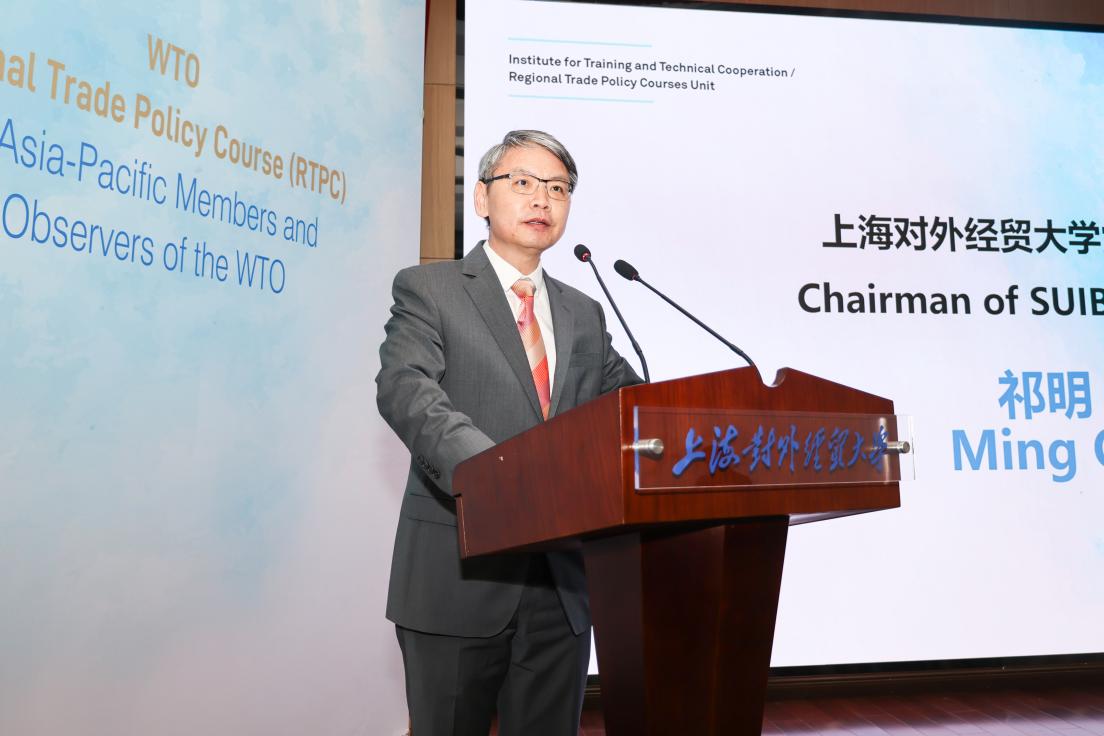 韩勇在致辞中指出,当前全球性挑战凸显,迫切需要世贸组织加快改革、推动国际经贸规则调整以提供解决方案。在此背景下,发展中成员必须打破能力制约,全面掌握规则,提升规则运用和谈判能力,才能使新一代的经贸规则真正符合发展中成员的利益和诉求。韩勇表示,中国的开放和发展为世界带来新的合作机遇,也一直在力所能及的范围内为世贸组织技术援助作贡献,包括设立“中国项目”和积极支持世贸组织秘书处更好开展亚太区域能力建设支持培训等。中国愿继续同其他发展中成员分享经验,提供更多惠及亚太区域发展中成员的公共产品,帮助发展中成员和最不发达国家培养更多熟悉世贸规则体系的人才。韩勇肯定了上海对外经贸大学作为世贸组织教席和RTPC合作伙伴,在传播世贸组织知识、开展前沿议题研究、与世贸组织进行技术援助合作等领域取得的成绩,并希望上海对外经贸大学与世贸组织加强合作,共同为世贸组织技术援助项目添砖加瓦。