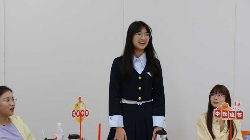 同学们还自发表演了歌曲和贯口《报菜名》等小节目。现场师生们欢声笑语,彼此之间的师生情谊也在中秋团圆的节日氛围中更加紧密,共同感受了中秋佳节的温暖与学院大家庭的关怀。
