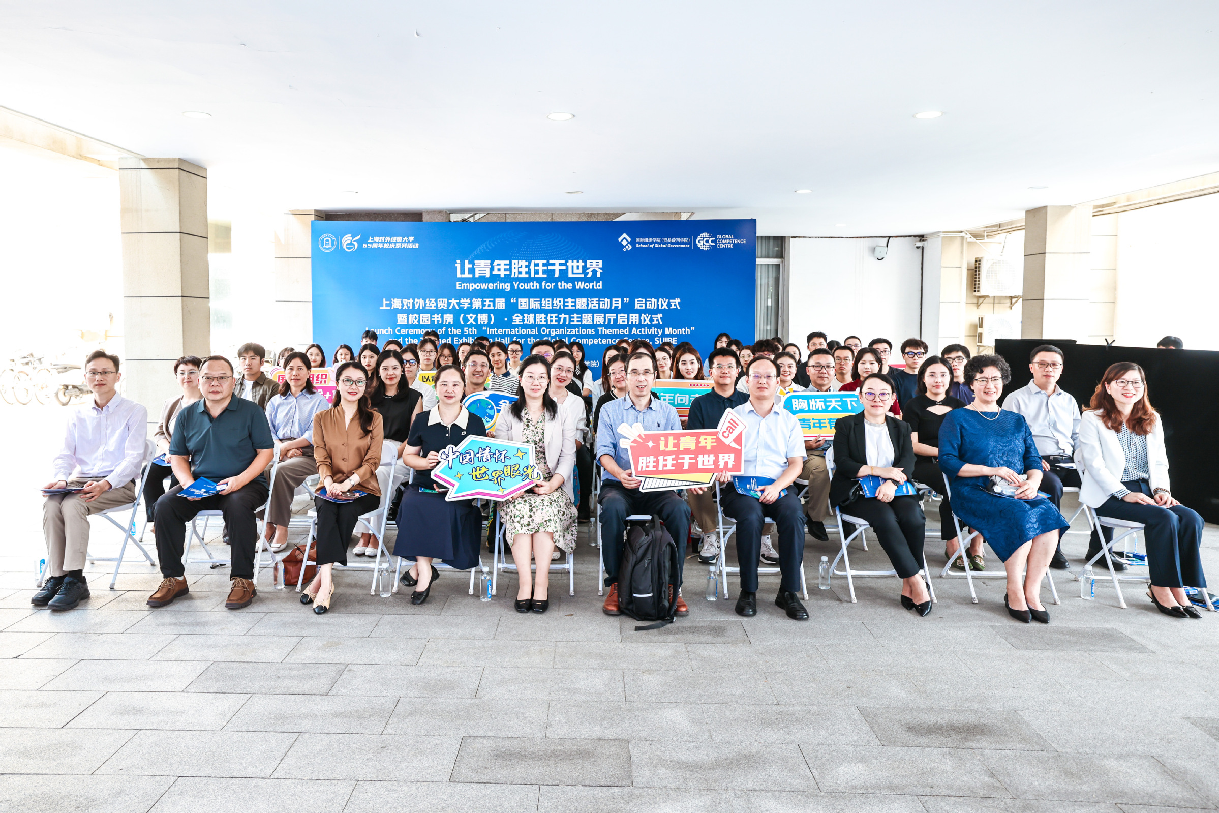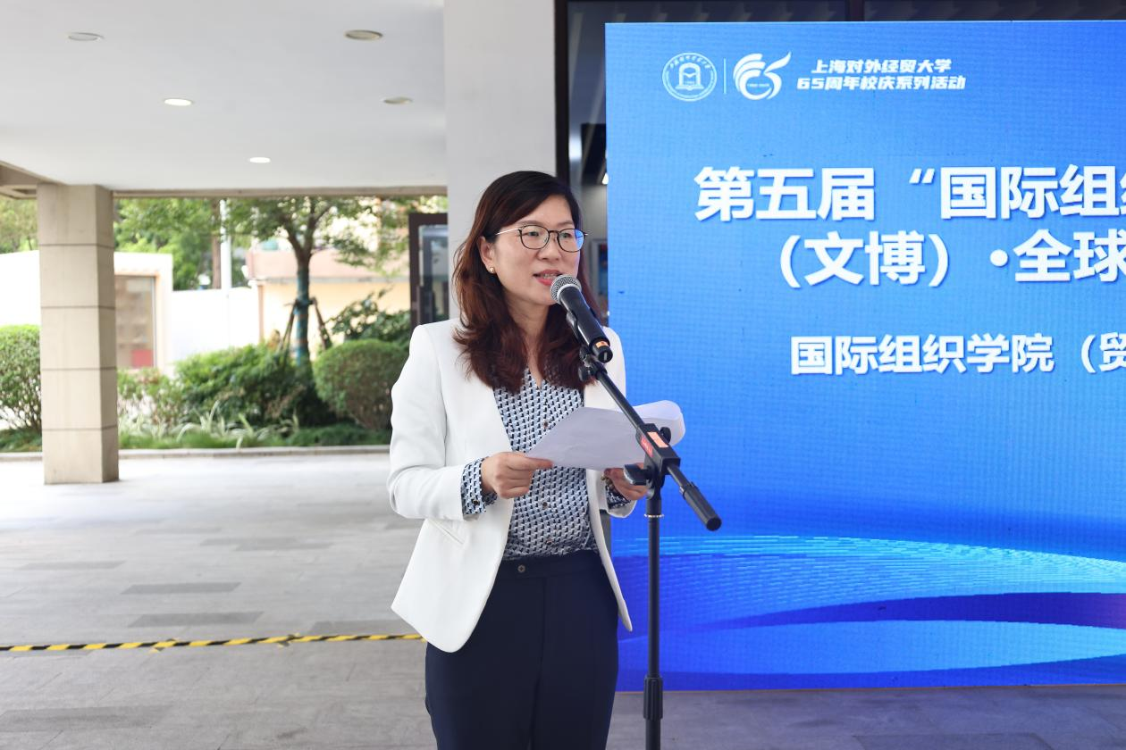10月15日下午,上海对外经贸大学举办第五届“国际组织主题活动月”启动仪式暨校园书房(文博)·全球胜任力主题展厅启用仪式,校党委副书记、副校长沈艺出席并致辞。世界自然基金会(WWF)上海区域主任、中国淡水项目主任任文伟,校党委常委、宣传部部长郭茜,校党委常委、统战部部长、教务处处长朱建明,招生就业处处长魏舒,外事处处长、港澳台办公室主任金泉,后勤综合管理处处长、工商管理学院党委书记武增勇,资产管理处处长张彦,研究生院副院长吴晓锋,学工部副部长、学生处副处长陈雪,学工部副部长、创业学院副院长高伟,相关学院党委(党总支)副书记和校团委领导,国际组织学院领导班子及师生代表70余人参加活动。