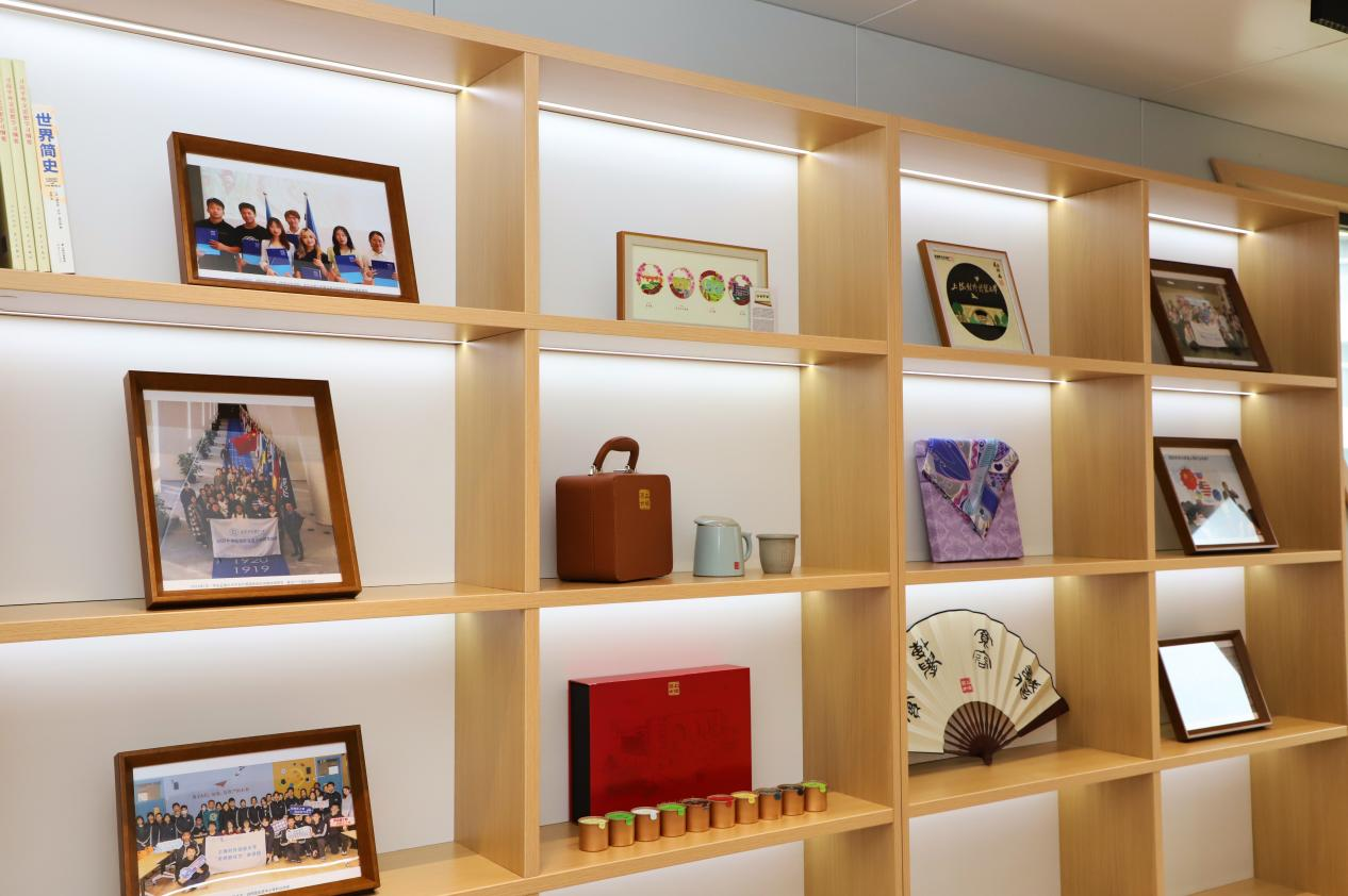 在展厅,师生可研读国际组织与全球治理杂志书籍,观赏全球性商品贸易展览,浏览全球胜任力中心活动影像,见证学校师生迈向国际舞台的坚实足迹。展厅还设置了特色文创和咖啡休憩区,方便师生捧卷沉思、围坐畅谈,在方寸之地感受多元文明交融之美。