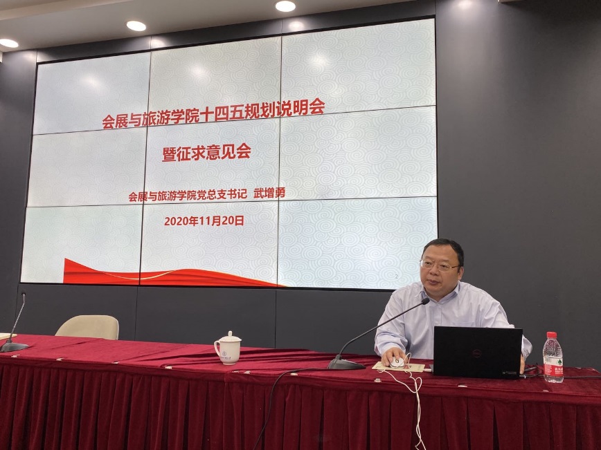 按照校党委的工作部署,结合学院工作实际进展,会展与旅游学院近日召开了学院十四五规划意见征求暨研讨会,学院班子成员、系主任、支部书记、教师骨干代表等参加了研讨会。