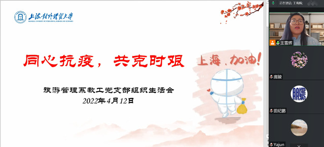 2022年4月12日下午,会展与旅游学院旅游管理系教工党支部召开以“同心抗疫,共克时艰”为主题的疫情防控专题组织生活会。会议由王雪辉书记主持,全体教师党员参加。