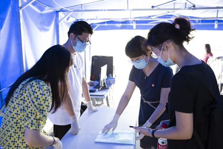 根据学校“第二学士学位入学考试”相关工作要求,党员志愿者按照各自分工,各司其职,认真履行岗位职责,确保了本次“第二学士学位入学考试”的顺利进行。党员志愿者分别在校门口“防疫检查岗”确认考生身份及健康状况,“引导员岗”指引学生进入候考大楼,“报名材料验证岗”查验考生报名材料,“候考室管理岗”、“监考岗”维持候考室和考场纪律。另外还设有“试卷押送岗”、“备用考场监考岗”等。