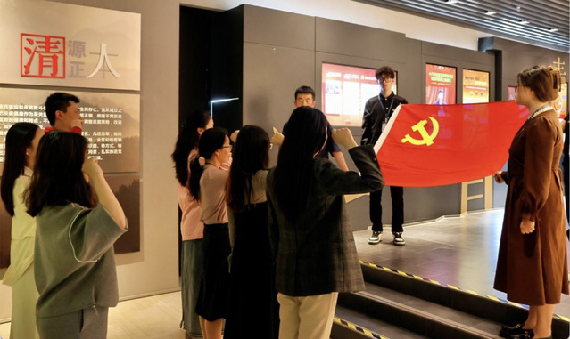 师生党员集体参观了 “清源正本”“激浊扬清”“清风悠扬”和“清新正身”四大主题展区。通过现场认真聆听讲解、观看警示教育片、了解典型案例等,支部成员接受了一次深刻的精神洗礼和思想淬炼,了解坚定不移全面从严治党、把纪律和规矩挺在前面的实践探索,从近年来典型案例中汲取深刻教训,进一步筑牢拒腐防变的思想堤坝。参观结束后,全体党员面对党旗重温入党誓词。