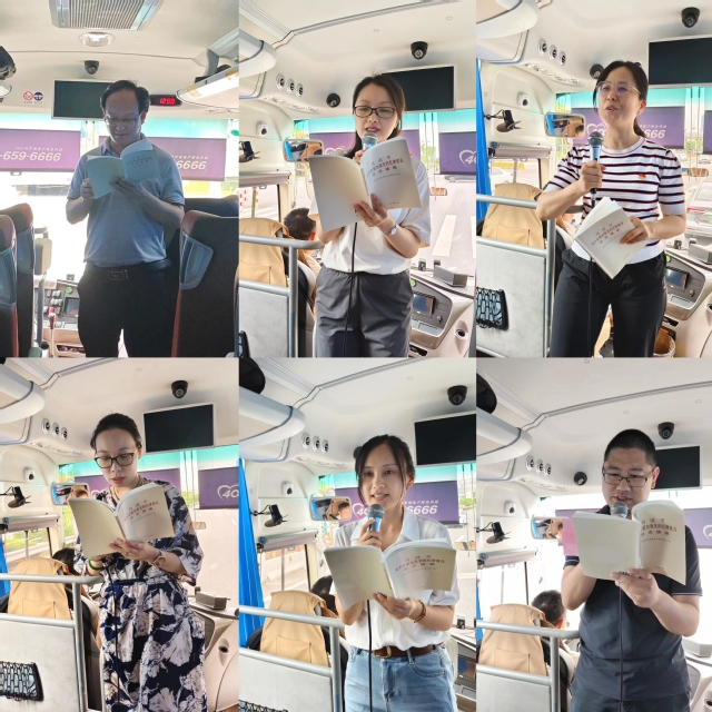 班车上,朱建明、魏舒、朱龙艳、居怡、王莉媛、陈豪等六位党员同志,分别带领全体党员认真学习了《习近平关于全面加强党的纪律建设论述摘编》。这是党在新时代推进全面从严治党的重要理论成果,对于每一名党员来说,都是一本必读的教材。通过学习,大家深刻认识到党的纪律建设的重要性,要不断提高自身的政治觉悟和纪律意识,确保各项工作始终在党的领导下有序进行。