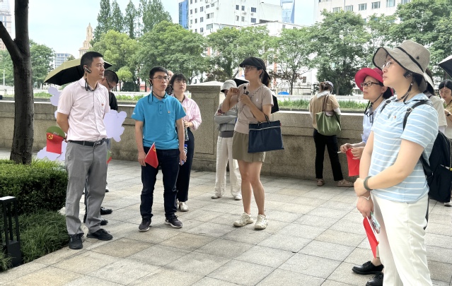 为更好地服务贸易强国和教育强国建设,引导党员教师主动在实践中加强党的创新理论武装,不断提升党性修养和专业素养, 7月2日,招生就业处党支部联合教务处党支部赴虹口北外滩开展“看‘潮涌百年’红色北外滩,燃‘笃行不怠’昂扬斗志,担‘教育强国’时代使命”主题实践教学活动。