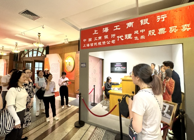 在浦江饭店(原理查饭店)中国证券博物馆,党员们“见证”了改革开放总设计师邓小平把飞乐音响股票赠送给来访的纽约证券交易所董事长约翰·范尔霖的历史瞬间,“倾听”到国际社会发出的“中国与股市握手”的惊呼。通过重温这一历史场景,党员们深刻感受到了中国证券市场从无到有、从封闭到开放的发展历程和改革开放的辉煌成就。