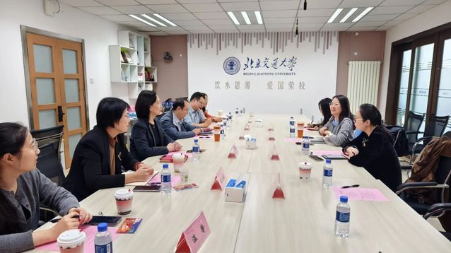调研最后一站来到了北京交通大学。北京交通大学就业与创业指导中心主任张博、副主任梁英、本科生院副院长、招生办公室主任马泰、商学院党委副书记张欣颖及相关工作人员出席调研活动。会上,调研团队详细了解了该校在就业引导、就业育人、课程建设、“招培就”联动、招生政策制定和招生宣传等方面的先进经验和做法。双方还就如何加强招生宣传、构建生涯育人体系、提升生涯教育工作质量、实现更高质量更充分就业等问题进行了深入的探讨。北京交通大学“四位一体”的精准就业指导服务体系、“招生、培养与就业”多向沟通反馈的工作机制和多层次的新媒体宣传矩阵为调研团队提供了宝贵的经验与启示。