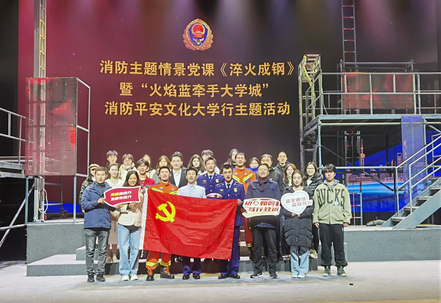 12月10日上午,保卫处党支部联合学工部党支部、工会党支部、国际中文教育学院党总支党员代表,各单位部门安全员和部分学生代表50余人赴松江区工人文化宫开展消防主题情景党课《淬火成钢》暨“火焰蓝牵手大学城”消防平安文化大学行主题活动。