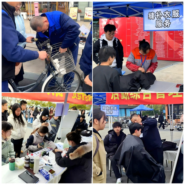 活动当日,支部在学生一食堂东广场上设置了多个服务点,项目包括非机动车维修、衣物缝补熨烫、小白鞋清洁、美发美甲修眉、手机贴膜、眼镜清洗维修、肩颈按摩等,参与的部门人员各展其能,为师生们排忧解难。据统计,活动期间共维修非机动车近百辆,为近两百部手机贴膜,同时完成了许多衣物缝补、眼镜清洗等服务。1200余名师生参与活动,体验到实实在在的便利与温暖。