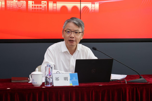 为推进深入贯彻中央八项规定精神学习教育,6月10日,学校办公室与统战部联合党支部、马克思主义学院教工第一党支部、国际经贸学院研究生第六党支部,联合举办了“学思想 强作风 建新功”主题党日活动。校党委书记祁明以《贯彻落实中央八项规定精神,以作风建设新成效推动学校事业高质量发展》为题作专题党课。