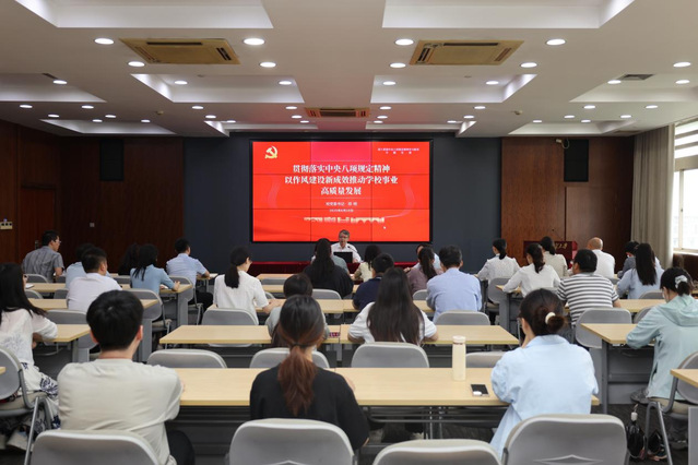 祁明从深刻领会中央八项规定精神的重大意义,中央八项规定精神的重要内容和贯彻落实学习教育的具体要求,以作风建设新成效推动学校事业高质量发展三个部分,为师生党员讲授了一堂兼具理论深度与实践指导性的党课。
