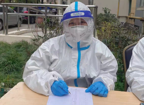 顾巍老师主动上门,关爱社区老人。4月1日,他穿上了大白的防护服,手持PDA扫描仪,与一位检测员及另一位志愿者到居民楼,为行动不便的老人上门做核酸测试。有些老人不会使用智能手机,不会使用二维码,他就用自己的手机上帮他们登录健康云,录入信息,生成二维码。他穿着全套防护服爬6楼,一会儿就能感到内衣已经湿了,带着的眼镜起雾了……他说:“我自已切身感受到了大白们的辛苦,闷热、不敢喝水、有时甚至还要面对居民的不理解与指责,我希望大家能对他们有更多的理解与支持。”