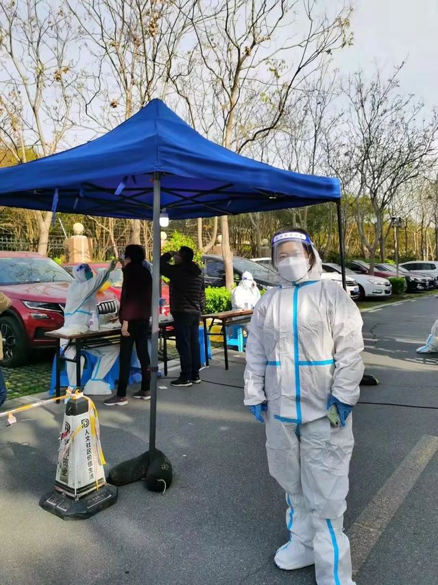 国际商务外语学院商务英语教工党支部纪检委员周媛积极参与社区核酸检测引导工作