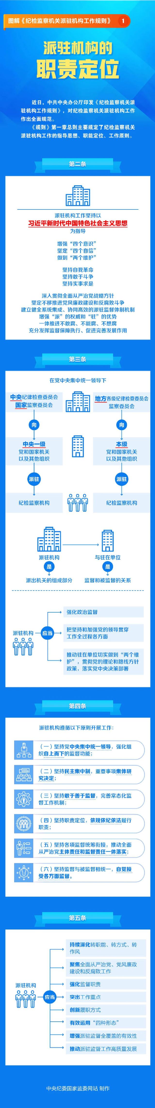 编者按:2022年6月,中共中央办公厅印发了《纪检监察机关派驻机构工作规则》(以下简称《规则》)。《规则》坚持以习近平新时代中国特色社会主义思想为指导,深入贯彻党的十九大和十九届历次全会精神,以党章为根本遵循,充分汲取派驻监督历史经验,有效运用党的十八大以来深化派驻机构改革的理论、制度和实践创新成果,对纪检监察机关派驻机构工作作出全面规范,对于派驻机构充分发挥监督保障执行、促进完善发展作用,具有重要意义。本期主要介绍派驻机构的职责定位、组织设置、领导体制、派出机关日常联系派驻机构的6项内容和“室组”联动监督6方面工作等内容。