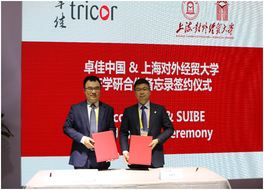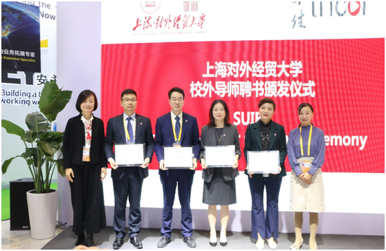 11月7日上午,会计学院与卓佳中国在本届进博会国家会展中心8号馆举行产学研合作基地签约仪式。上海对外经贸大学副校长陈洁、会计学院党委书记谈华、副院长杨慧辉、副书记张晴晴,卓佳中国首席执行官张海亮、首席财务官林建伟、首席运营官游旭挺、商务服务总监金峰梅、人力资源总监王艳出席签约仪式。