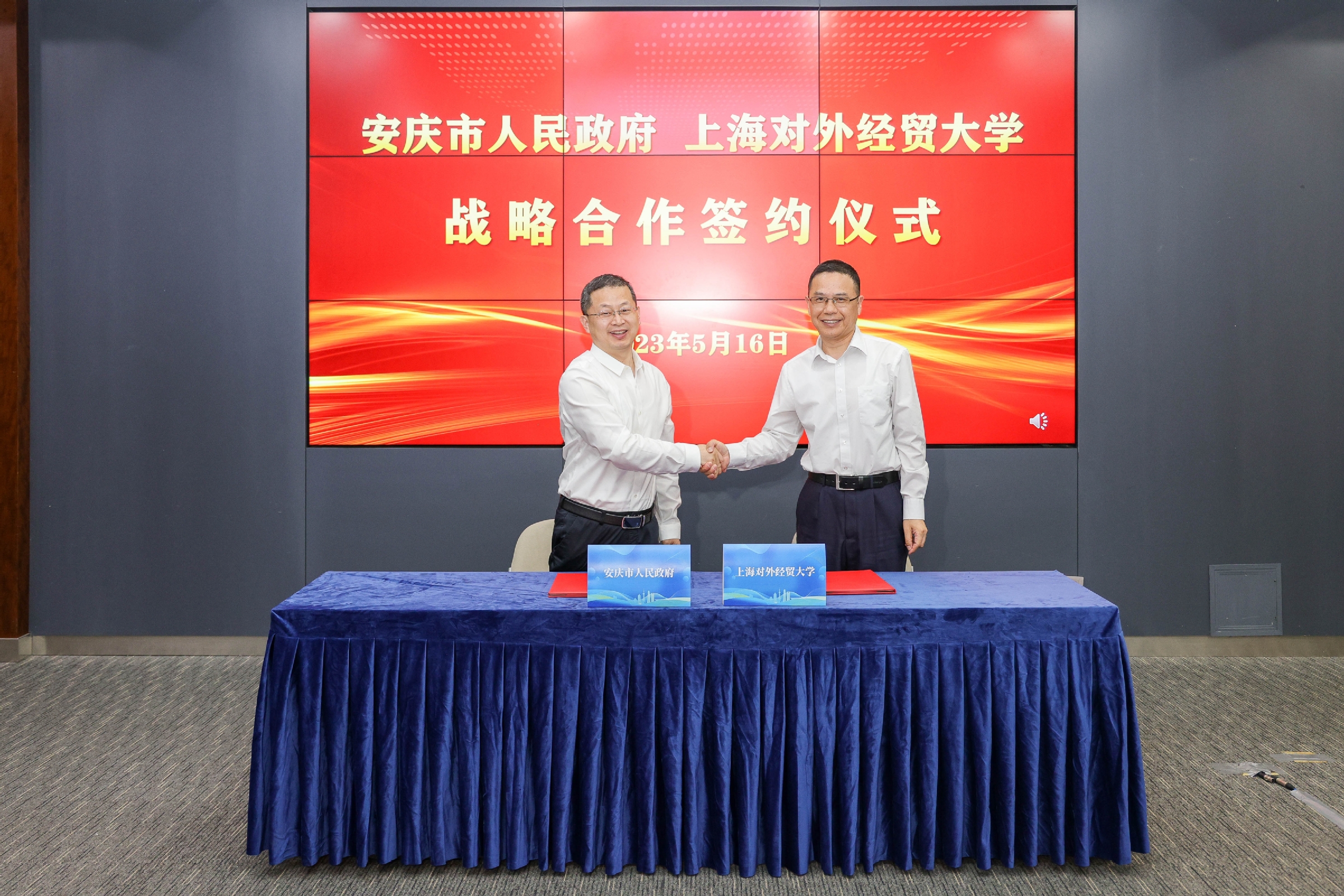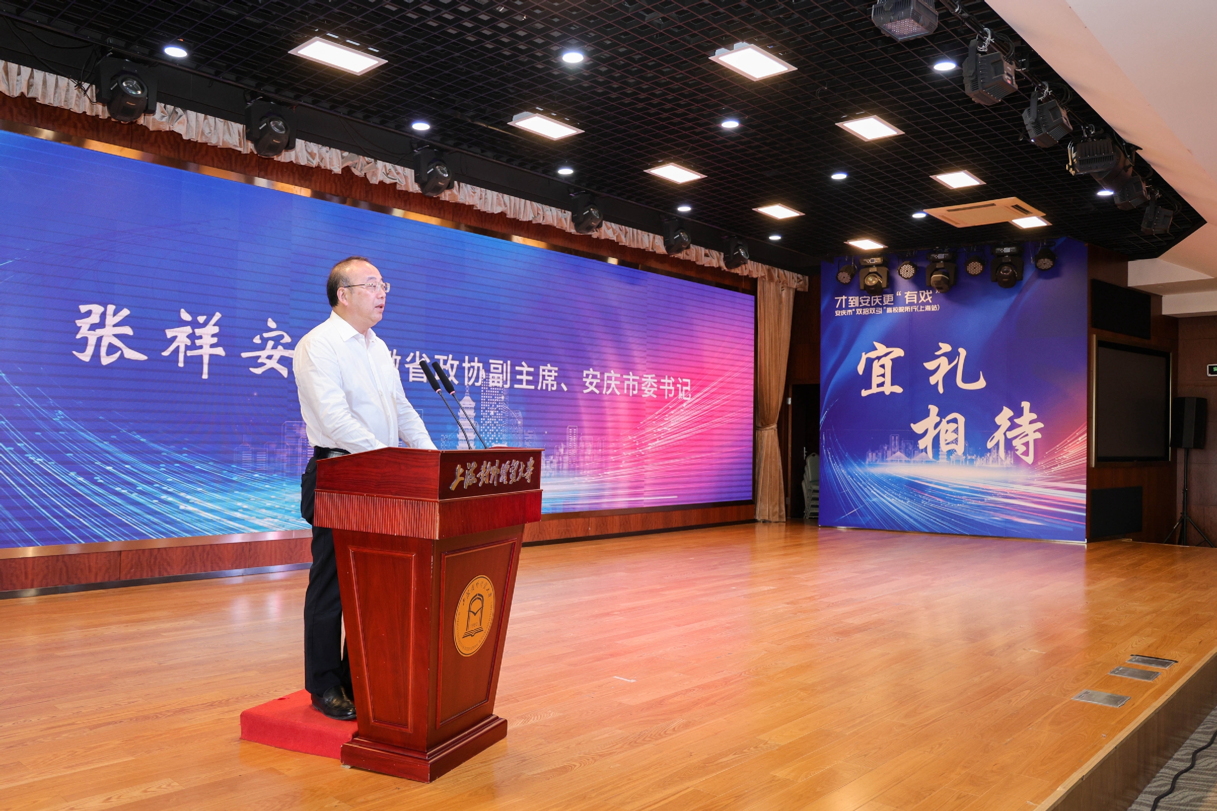 5月16日上午,安庆市党政代表团到访上海对外经贸大学,出席安庆市“双招双引”高校院所行(上海站)活动启动仪式、“才到安庆更有戏”主题校园招聘会、开放型经济工作专题座谈会、安庆市人民政府与上海对外经贸大学战略合作签约仪式等主题活动。