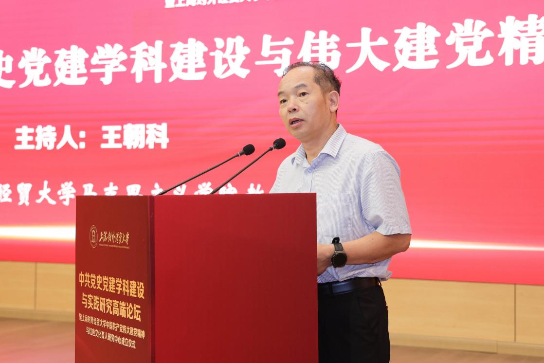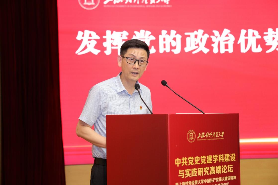 为全面学习贯彻党的二十大精神,深入开展学习贯彻习近平新时代中国特色社会主义思想主题教育,6月18日,上海对外经贸大学举办中共党史党建学科建设与实践研究高端论坛暨上海对外经贸大学中国共产党伟大建党精神与红色文化育人研究中心成立仪式。论坛由中共上海对外经贸大学委员会主办,上海对外经贸大学党委组织部、上海对外经贸大学马克思主义学院、上海高校思想政治理论课名师工作室“庾向芳工作室”承办。来自北京师范大学、中国人民大学、湘潭大学、同济大学、华东师范大学、华东理工大学、上海财经大学、上海大学、上海师范大学、上海应用技术大学、上海立信会计金融学院、上海工程技术大学、上海健康医学院及上海对外经贸大学等十余所科研机构和高校的近百名专家学者参加论坛,论坛围绕中共党史党建学科建设与伟大建党精神、增强党组织政治功能和组织功能等专题展开了广泛和深入的讨论。