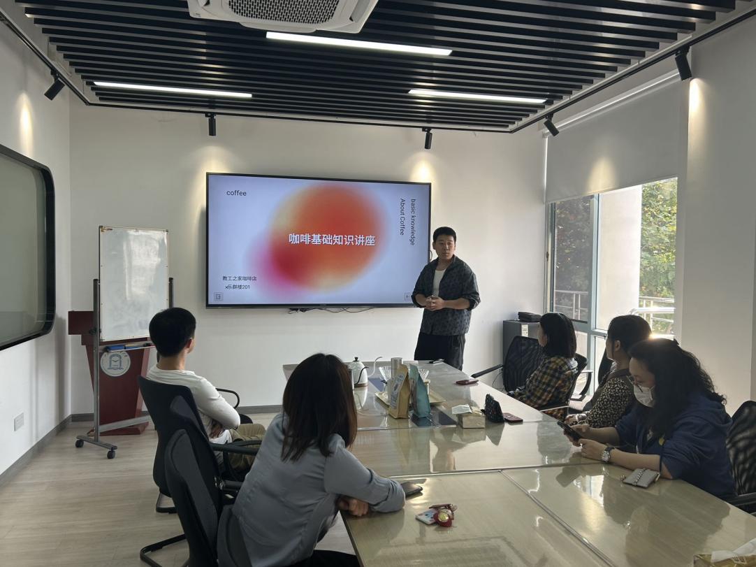 活动中,参与教职工首先对咖啡的相关知识以及不同的咖啡制作流程进行了学习,了解到了不同的咖啡豆品种以及咖啡豆的不同处理方式,学习了手冲咖啡与意式咖啡的制作方式。