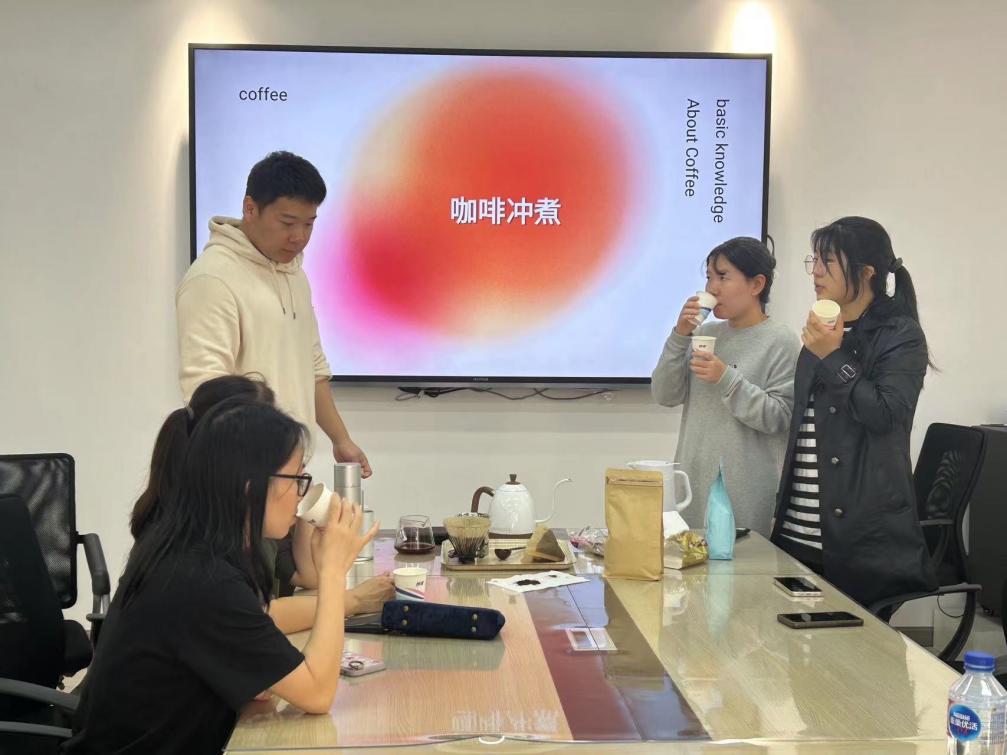 在讲解员的讲解与带领下,各位教职工还着手进行手冲咖啡的制作体验,通过研磨、注水、萃取等一系列流程进行了手冲制作并进行了品尝,切身体会到不同萃取方式对于咖啡风味的影响,体验到了咖啡文化的魅力与趣味。