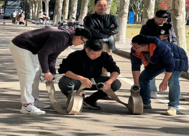 本次比赛校内各二级工会积极参与,共有10支教职工队伍参加,每队4人,比赛内容为消防水带展开、连接和出水;比赛项目贴合实战,既考验个人消防技能,也体现了团队协作配合能力。