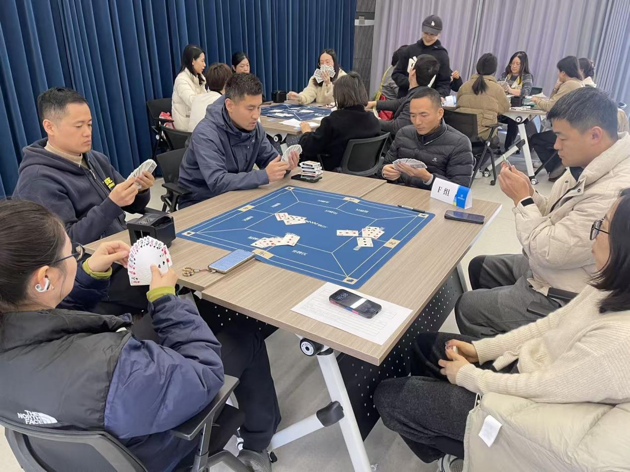 大怪路子扑克牌比赛共有20支参赛队伍。比赛采用淘汰制,牌桌上,选手们时而低声商议战术,时而凝神分析牌面,每一次出牌都凝聚着团队的判断与配合。经过多轮激烈角逐,最终金泉队凭借稳定的发挥、清晰的战术布局脱颖而出,成功摘得该项目桂冠;孟亮带领的队伍与赵松带领的队伍分别凭借出色表现,斩获第二名与第三名。
