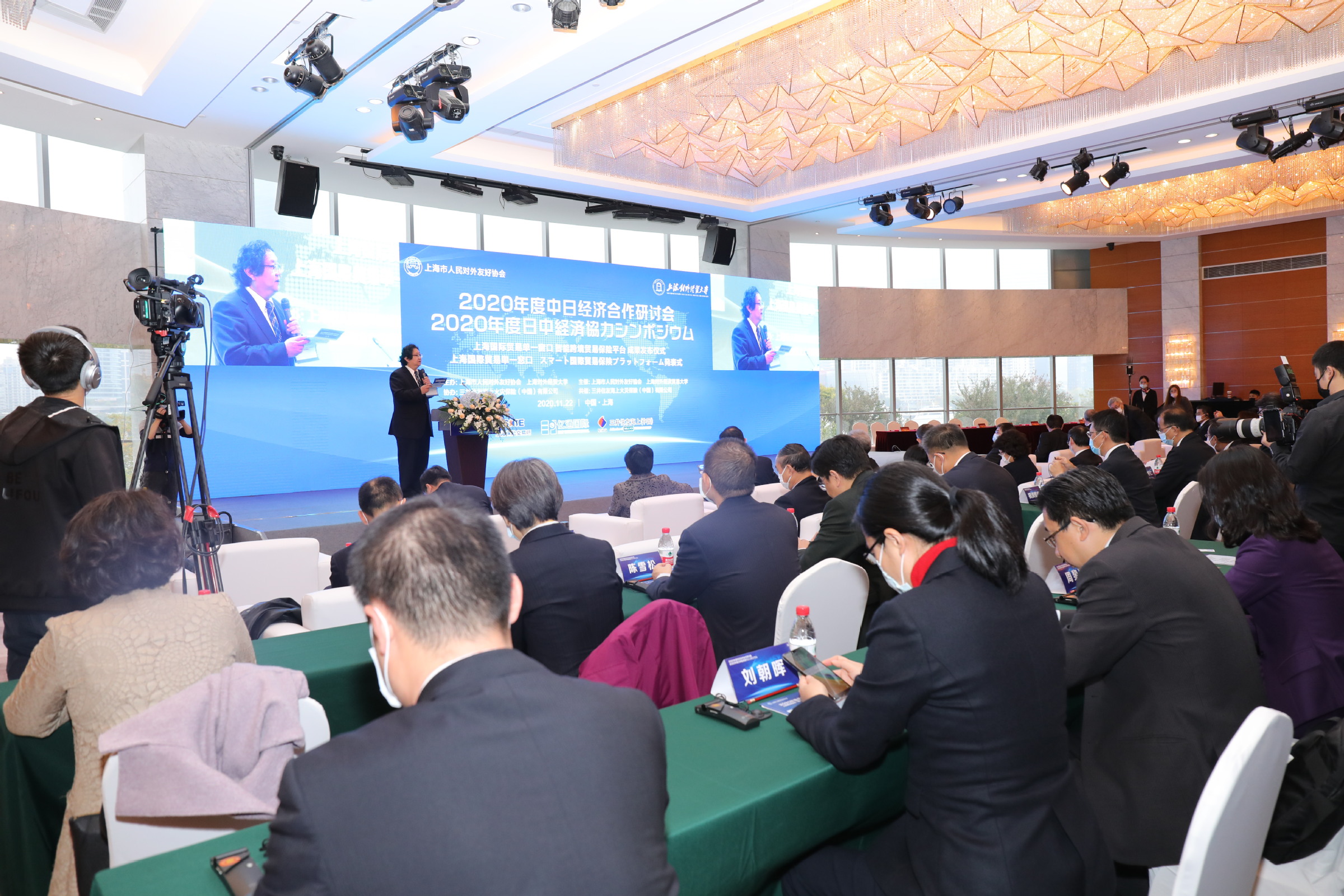 11月22日,由我校和上海市人民对外友好协会主办,三井住友海上火灾保险(中国)有限公司协办的2020年度中日经济合作研讨会在中国金融信息大厦举行。中国日本友好协会常务副会长程永华,上海市人大常委会副主任、上海市人民对外友好协会会长沙海林,我校校长汪荣明,上海市人民对外友好协会副会长景莹,日本国驻沪总领事馆总领事(大使)矶俣秋男,日本三井住友海上火灾保险(中国)有限公司董事长伊藤幸孝等领导和嘉宾出席会议。来自上海亿通国际股份有限公司、上海保险交易所股份有限公司、中国人民财产保险股份有限公司、中国太平洋财产保险股份有限公司、中国平安财产保险股份有限公司、中远海运财产保险股份有限公司、中日地方发展合作示范区等公司和单位代表参加研讨会。来自中日两国政商、学术界的近百位代表出席。 全国日本经济学会副会长、我校日本经济研究中心主任陈子雷教授主持研讨会。
