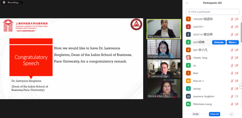 为更好的加强国际交流合作,深度融合国际学术环境,有效开展中外学术对话,11月20日,会计学院联合美国佩斯大学、美国罗格斯大学、英国谢菲尔德大学、英国邓迪大学、英国爱丁堡龙比亚大学、澳大利亚迪肯大学、土耳其杜库兹伊鲁尔大学等知名大学共同在线举行为期两天的“财务与会计”国际学术研讨会。副校长陈洁、会计学院全体班子成员、学院教师及研究生代表参加开幕式,会计学院副院长杨慧辉教授主持研讨会。