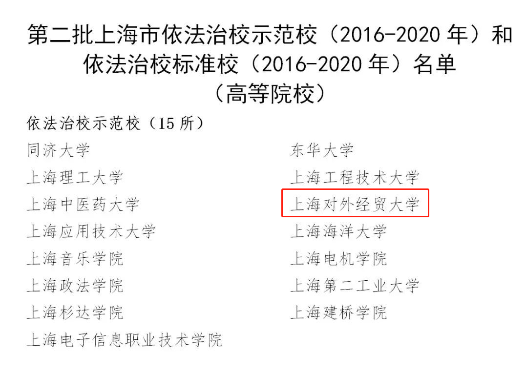 学校全面推进决策、执行、管理、服务、结果公开,坚持重大事项公示制度,定期公开关系师生员工切身利益的信息,坚持校长信箱、校领导接待日、校领导联系学院等制度,回应师生员工关切问题。在全校师生共同努力下,学校治理体系进一步完善,治理能力进一步提升,获批上海市“依法治校示范校”,财务管理、审计工作在全市相关评价中名列前茅,连续蝉联安全文明校园、市级文明单位。