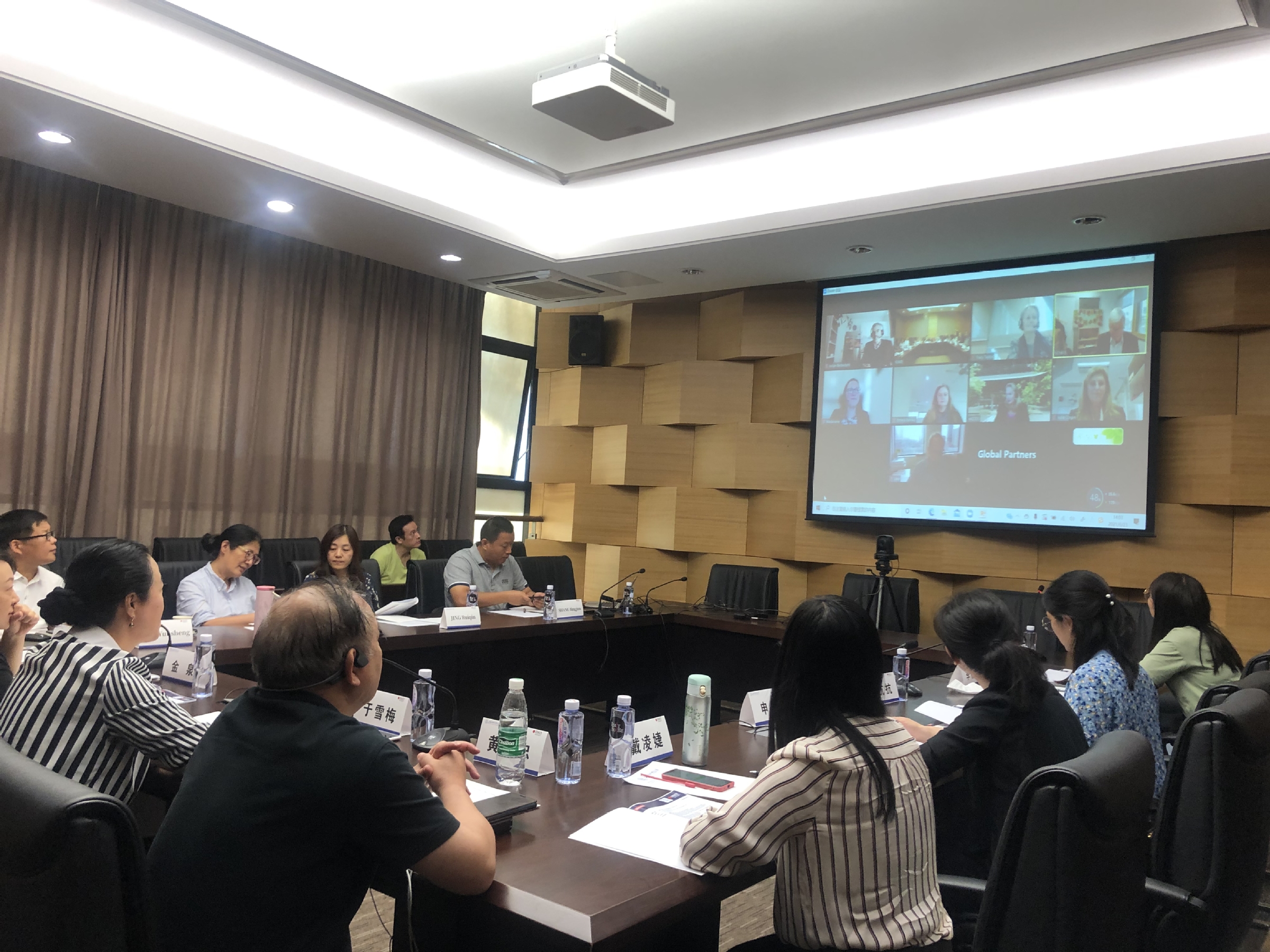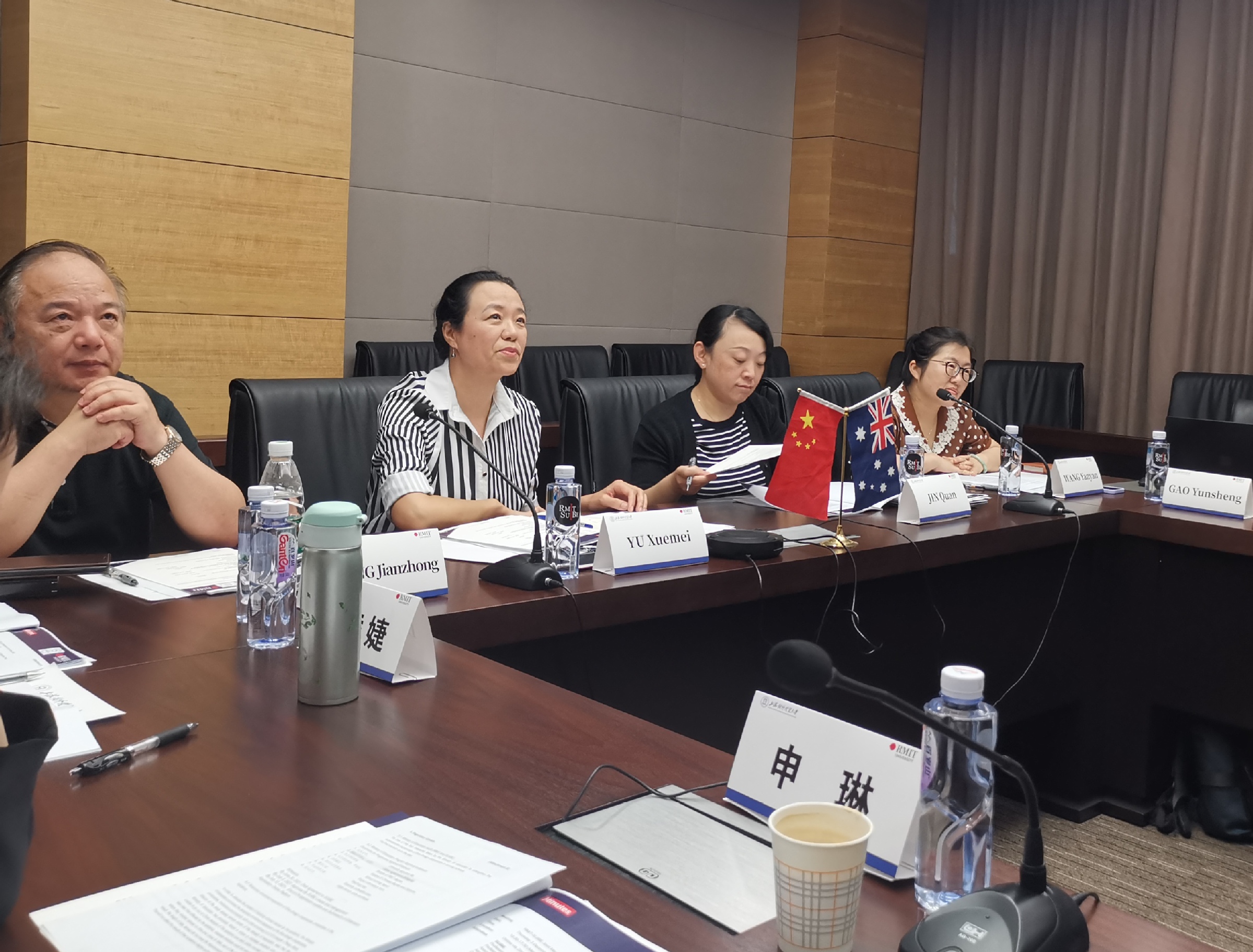6月23日下午, 2021年度中澳合作教育项目联合管理委员会会议在学校古北校区以线上线下融合的方式召开。会议由副校长于雪梅和RMIT大学副校长Peter Coloe共同主持,RMIT大学副校长、商学部负责人Julie Cogin教授,培训部主管Jake Heinrich等10余名项目团队成员在线参加会议,我校外事处副处长王艳艳、国际经贸学院党委书记金泉、院长黄建忠、副院长高运胜等10余名中澳合作项目教师线下参加会议。