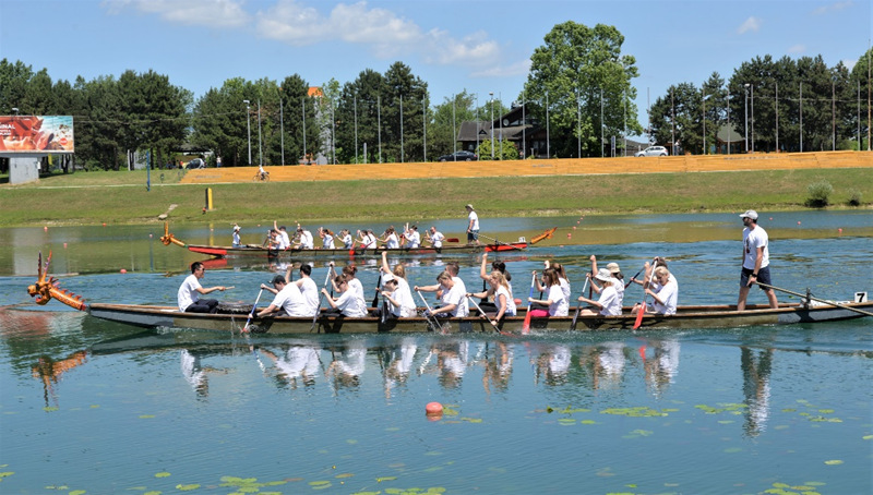 新华网萨格勒布6月6日电(记者李学军)为庆祝端午节、中国克罗地亚建交30周年暨萨格勒布大学孔子学院成立10周年,萨格勒布大学孔子学院(以下简称“孔院”)第七届龙舟赛活动日前在萨格勒布雅伦湖畔隆重举行,萨格勒布市政府体育运动负责人雷娜塔·弗拉伊哈尔、中国驻克罗地亚大使馆教育组负责人孟维亮、孔院师生和当地各界人士300余人参加了此次活动。