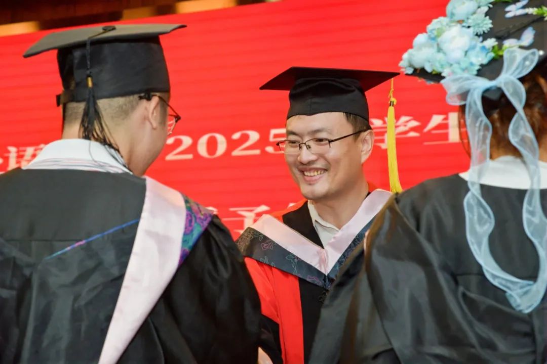 学院领导和学位评定分委员会委员为毕业生颁发学历学位证书并拨穗。