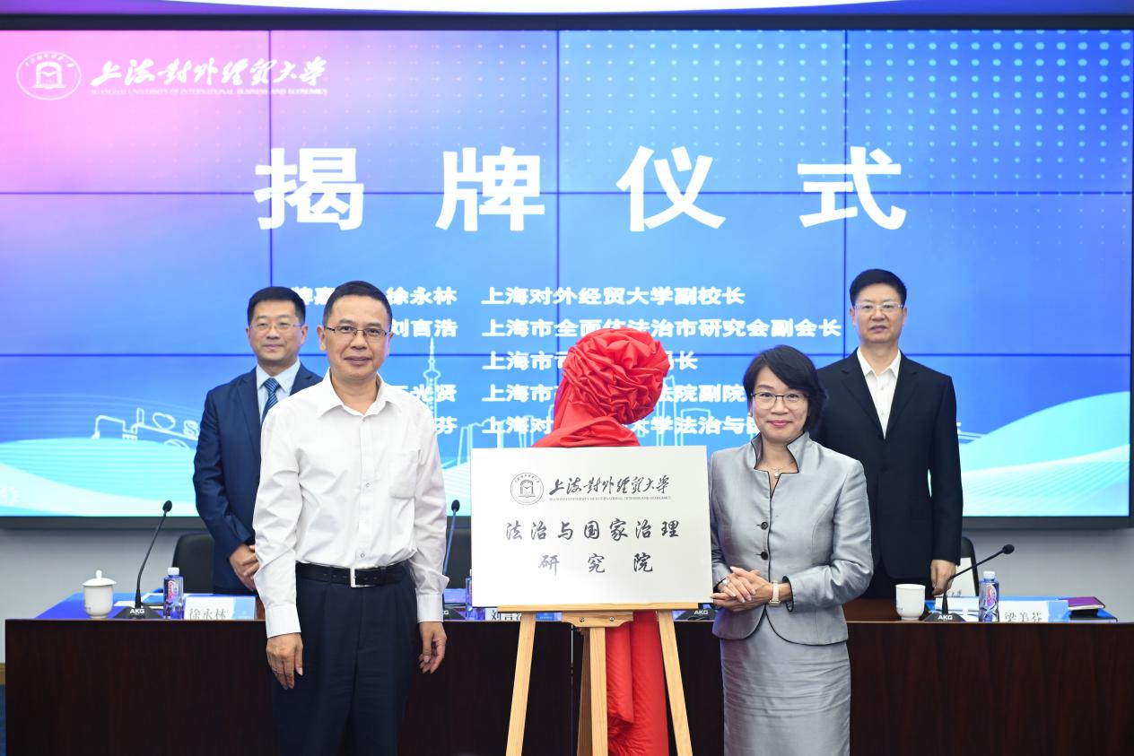 上海对外经贸大学副校长徐永林教授,上海市全面依法治市研究会副会长、上海市司法局副局长刘言浩,上海市高级人民法院副院长王光贤,全国人大常委会香港特别行政区基本法委员会委员、上海对外经贸大学法治与国家治理研究院首任院长梁美芬教授出席了揭牌仪式,并作致辞。揭牌仪式由上海对外经贸大学法学院院长乔宝杰教授主持。