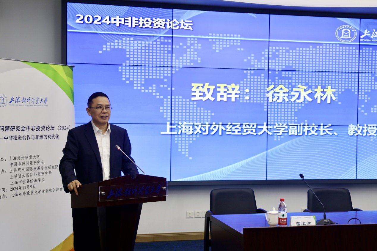 徐永林代表学校对出席论坛的嘉宾与专家学者表示热烈欢迎,感谢组织团队的努力,并介绍了学校在开放经济与国际发展合作领域的成就。他指出,上海对外经贸大学在服务国家战略、推动中非合作和智库建设方面具有独特优势,强调学校致力于通过学科建设、人才培养和智库服务助力中非现代化与可持续发展合作。