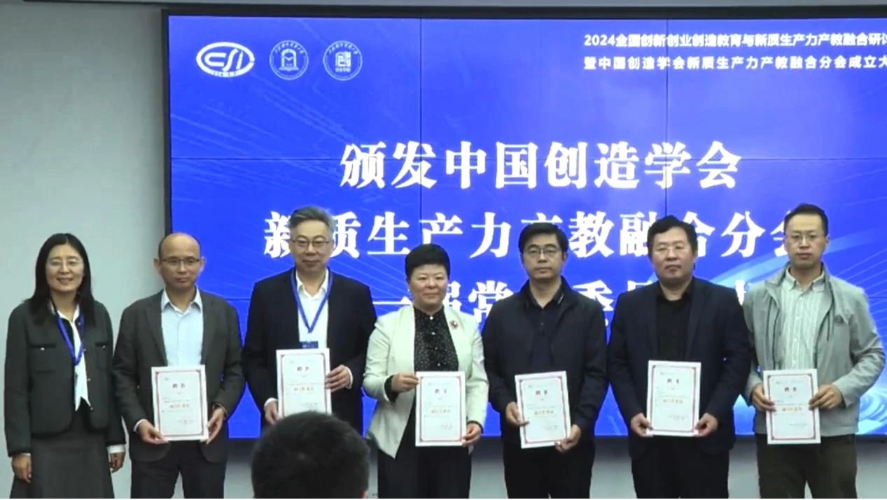 经过无记名投票,分会成功选举出第一届常务委员会委员,包括主任委员1名、常务副主任委员兼秘书长1人、副主任委员8人,副秘书长13人。徐建平理事长与姜秀珍副校长共同为分会揭牌,并为新一届常务委员颁发聘书,标志着中国创造学会新质生产力产教融合分会正式成立。