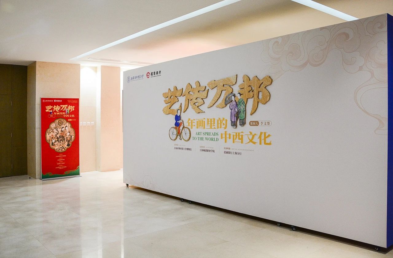 12月11日下午,由上海对外经贸大学博物馆主办,在上海城建职业学院与招商银行上海分行的支持下,“艺传万邦——年画里的中西文化”展览在上海对外经贸大学古北校区隆重开幕。展览以中华文化的对外传播为研究视角,以“年画里的中西文化”为切入点。通过年画中的刻印技术、流传路径、绘画内容等,展现出传统年画的艺术审美以及创作内容的开放性。展览展示了部分具有上海本土文化特色的小校场木版年画,从传统年画的角度展示中西文化的交流与融合。