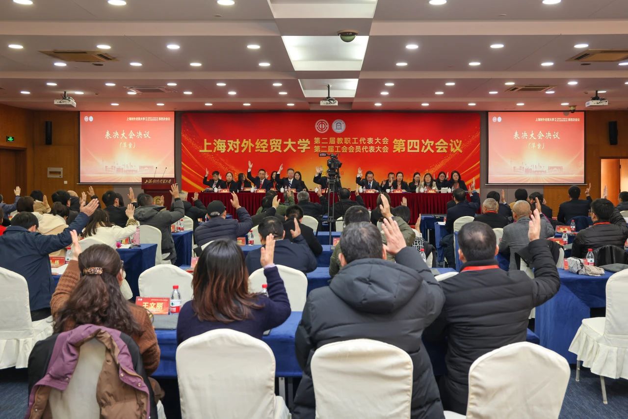 下午,在第二次全体会议上,表决通过了大会决议。大会号召,全体教职工要用习近平新时代中国特色社会主义思想武装头脑、指导实践、推动工作,牢牢把握教育的政治属性、人民属性、战略属性,胸怀“国之大者”“城之要者”,以全面落实巡视整改为契机,以全面深化综合改革为引擎,以更高的站位、更宽的视野、更高的目标、更实的举措推动新一轮高质量发展。要找准把牢“上经贸大”服务国家战略和区域经济社会发展的发力点、着力点,在以中国式现代化全面推进强国建设、民族复兴伟业的大坐标中看清历史方位和使命担当,干字当头,奋力一跳,为教育强国、贸易强国建设作出新的更大贡献。