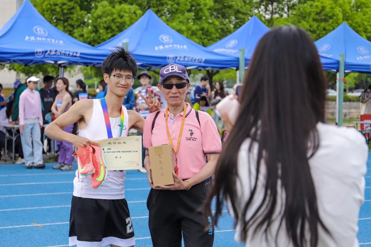国际经贸学院徐晓建同学在男子1500米比赛中,以4分12秒30的成绩大幅提升该项目校运会以及校田径最高纪录。在之后进行的男子3000米角逐中,徐晓建与队友周予乐,又双双打破男子3000米校运会以及校田径最高纪录,成绩分别为9分32秒19、10分04秒63。同一学院两人三次打破校田径最高纪录,成为本届校运会的一大亮点。