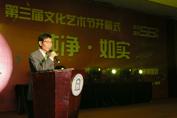 楼军江在致辞中指出,第三届文化艺术节以“展才艺风采、奏青春乐章、普发展新篇”为主题,旨在进一步丰富师生校园文化生活,不断深化中国梦和社会主义核心价值观宣传教育。举精神之旗、立精神支柱、建精神家园,离不开文化艺术。校园文化的魅力体现在外表的绚丽璀璨,体现在内在的充实感受,追求思想性、艺术性、观赏性的有机统一,组合有热度、有道德、有温度的文艺作品,彰显信仰之美、崇高之美,不拘一格、不形一态、不定一尊,校园文化内含当代校园生活的底蕴,传承学校传统文化的血脉。涵养精气神、唱响主旋律是校园文化的不竭动力。他强调要通过校园文化建设,着力增强师生的文化自觉和文化自信,不断凝聚师生、团结师生、激励师生,努力打造具有上经贸大特色、广大师生员工校友高度认同的文化家园,为建设“高水平、国际化、特色鲜明的应用研究型大学”提供文化动力。