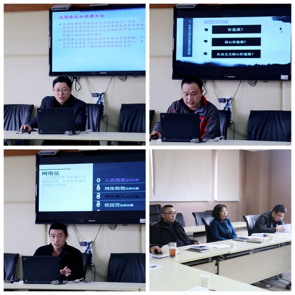 会上,学生处副处长李少丹、金融管理学院辅导员李红利、会展与旅游学院党总支副书记冯昕先后代表“中国历史与文化自信”、“理想·价值·人生”、“网络与大学生活”专题课程组,进行了试讲。